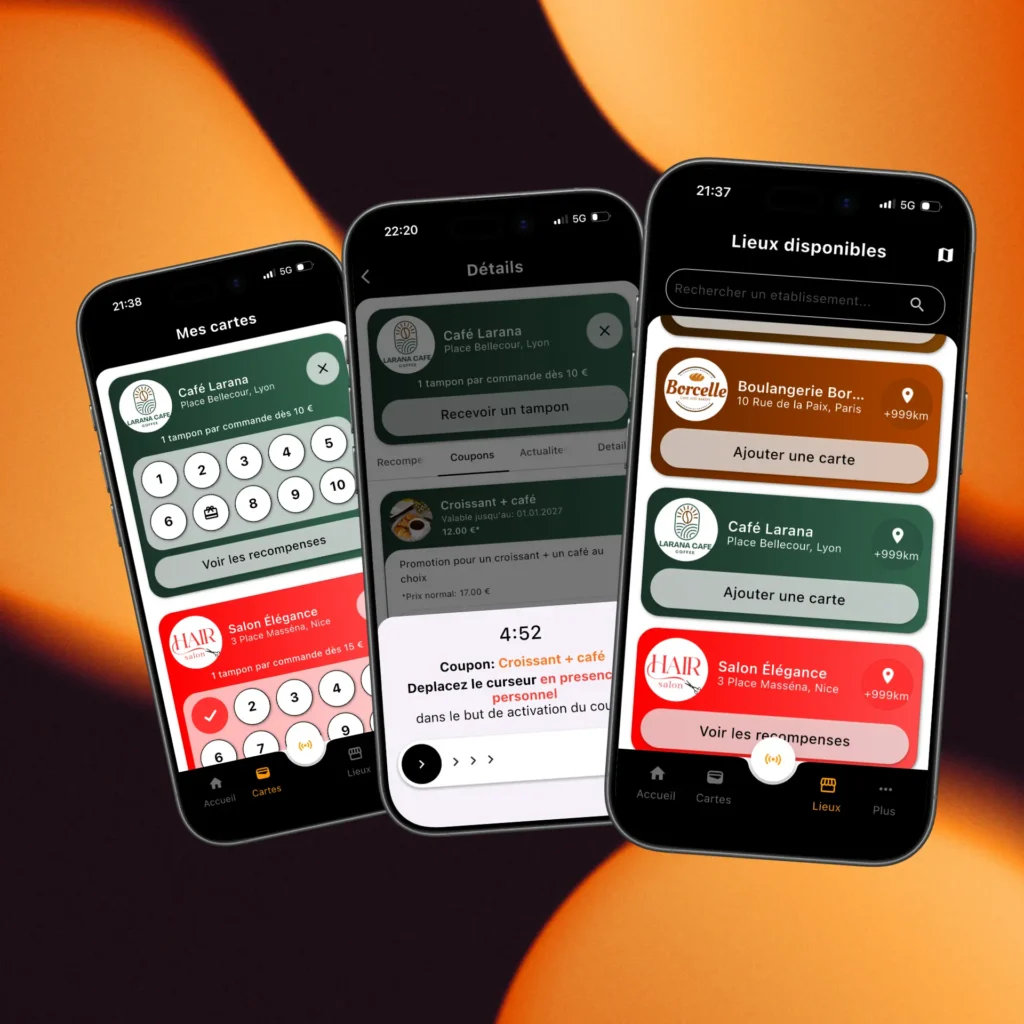 Le client reçoit un tampon en approchant une carte NFC ou en scannant un code QR.